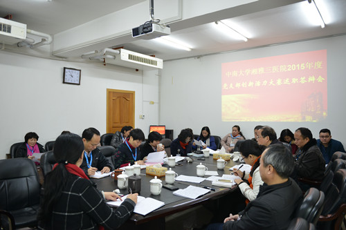 12月28日,2015年党支部创新活力大赛述职答辩在综合楼一会议室举行。医院党委书记罗爱静、党委副书记、纪委书记吴希林、党委副书记邓云龙、各党支部书记及党群部门负责人参加会议,会议由党委副书记邓云龙主持。