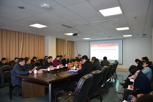 12月31日,医院党委书记2015年度履行党建工作责任制现场考核在外科楼19楼会议室举行。学校党建工作调查组第三组组长唐忠阳、组员张国平、陈迎明来医院进行现场调查考核。院领导罗爱静、陈方平、吴希林、袁洪、朱晒红、邓云龙、杨飞龙出席。会议由党委副书记兼工会主席邓云龙主持,院长陈方平致辞。