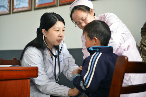 仪式结束后,儿科赵玲玲教授带领儿科医生们有序的为孩子进行了常规体检及先心病筛查。通过此次体检也及时发现了数位身体发育不良患儿及两位先心病患儿,并将此情况反映给了校长,肖校长表示会尽快与家属取得联系,我院儿科也将继续关注这几位孩子的健康状况。