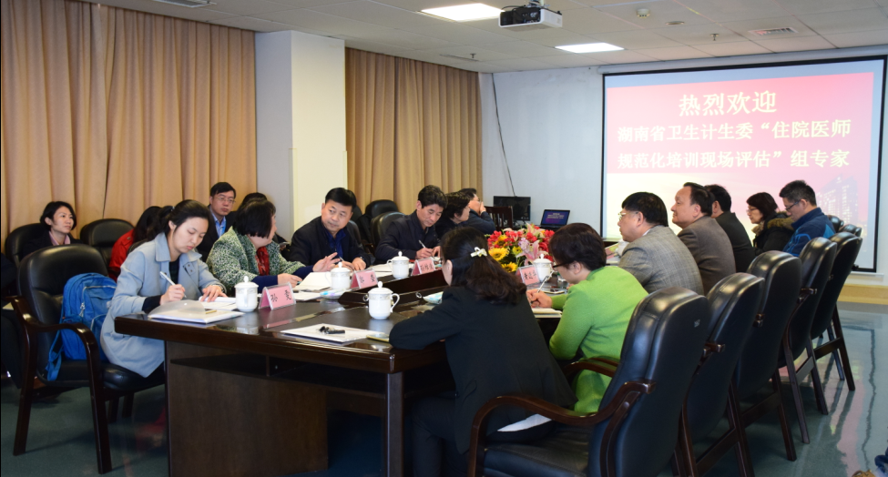 3月21日,湖南省卫计委住院医师规范化培训工作检查评估专家组一行六人在省卫计委科教处范珍贤处长带领下莅临我院对住培工作进行全面检查评估。