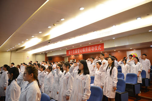 会上,医学生代表表达了加入“爱心”志愿队伍,以感恩之心回报社会的愿望,并带领志愿者们庄严宣誓,承诺将遵守各项规章制度,践行志愿者精神,尽己所能,帮助他人,服务社会。