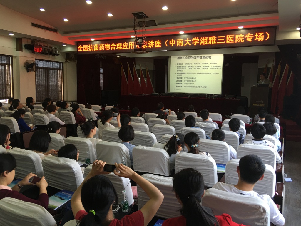 4月29日下午,“全国抗菌药物合理应用专家巡讲”在我院门诊5楼多功能厅举行。据了解,此次巡讲由中华医学会主办、中南大学湘雅三医院药学部承办,旨在推动全国抗菌药物的合理使用、规范医务人员的用药行为、提高抗菌药物应用的管理水平。