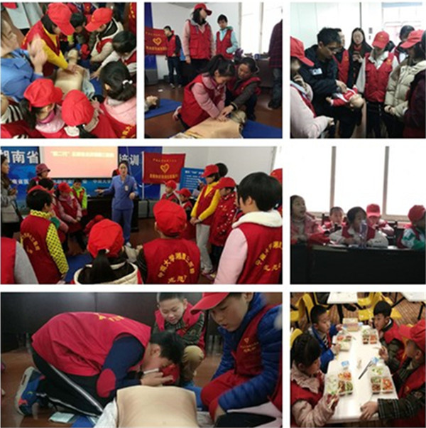 门诊护士长肖秀珍对门诊志愿服务的岗位设置、服务项目、常见问题和注意事项进行了培训,120护士长龙燕琼对急救知识特别是海姆立克急救法和心肺复苏术进行了培训,孩子们耳听笔记,积极抢答,动手操作,特别用心。