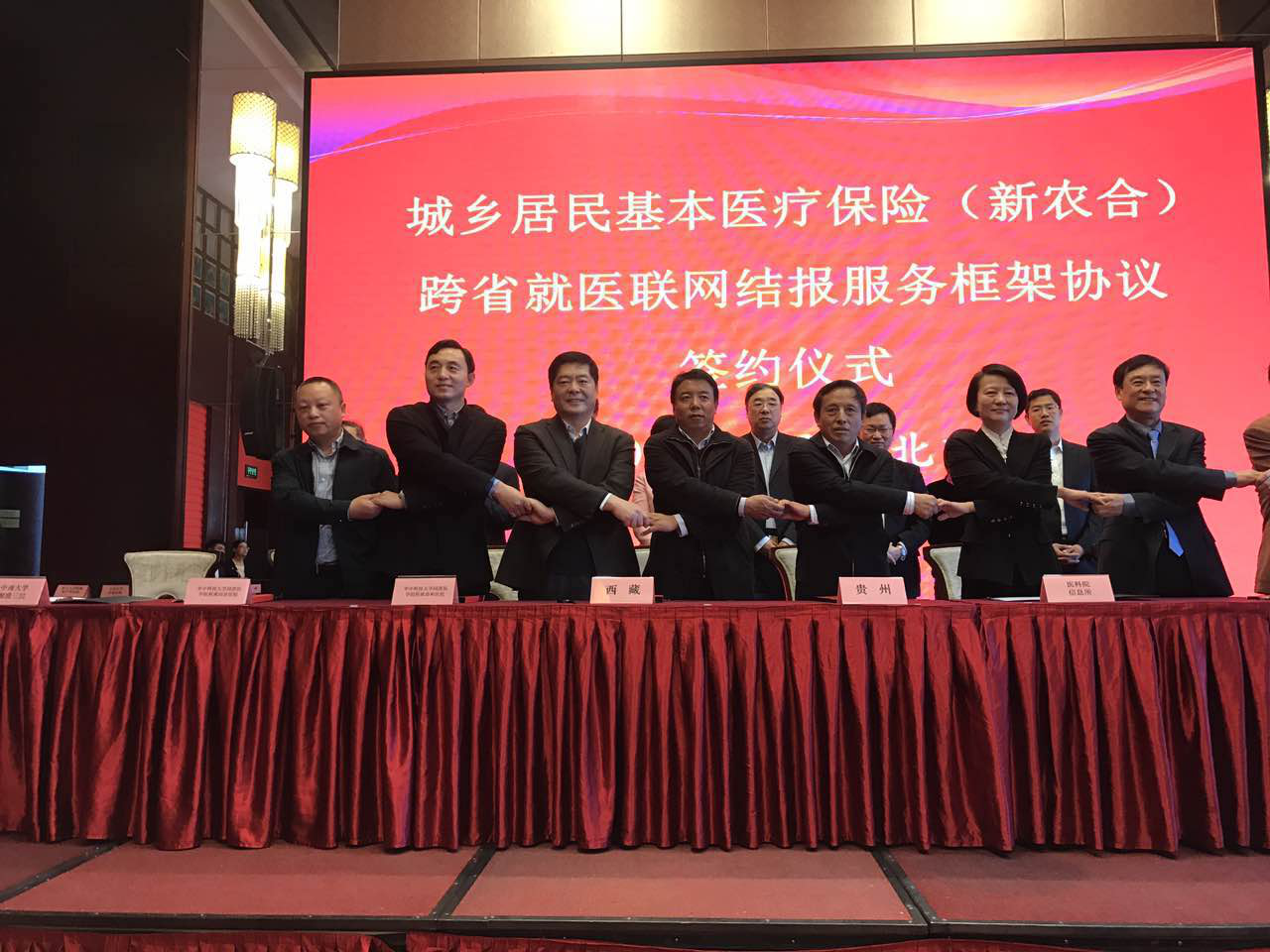 2月23日,城乡居民基本医疗保险(新农合)跨省就医联网结报签约仪式在北京举行,本次签约活动由国家卫生计生委基层卫生司主办,国家卫生计生委、国务院医改办、财政部、中国保监会、中国医学科学院,以及各相关省份卫生计生委、签署协议的定点医疗机构、中国人寿保险股份有限公司、深圳市腾讯计算机系统有限公司有关负责同志共300余人参加了签约仪式,国家卫生计生委马晓伟副主任出席签约仪式。本次签约,辽宁、四川、安徽、吉林、贵州、西藏、陕西、甘肃、福建、海南等省份省级新农合管理机构(或结算机构)作为甲方,北京、天津、上海、广东、湖南等省份的就医联网定点医疗机构作为乙方,中国医学科学院医学信息研究所(国家卫生计生委异地就医结算管理中心)作为丙方,中国人寿保险股份有限公司作为丁方共同签署协议。协议与分级诊疗政策相结合,明确了各签署方的责任、义务,规范了转诊、定点就医、垫付、审核、回款等业务环节。我院范自力院长助理代表医院出席服务框架协议签约仪式,中南大学湘雅三医院成为国家首批跨省就医结报定点医疗机构。