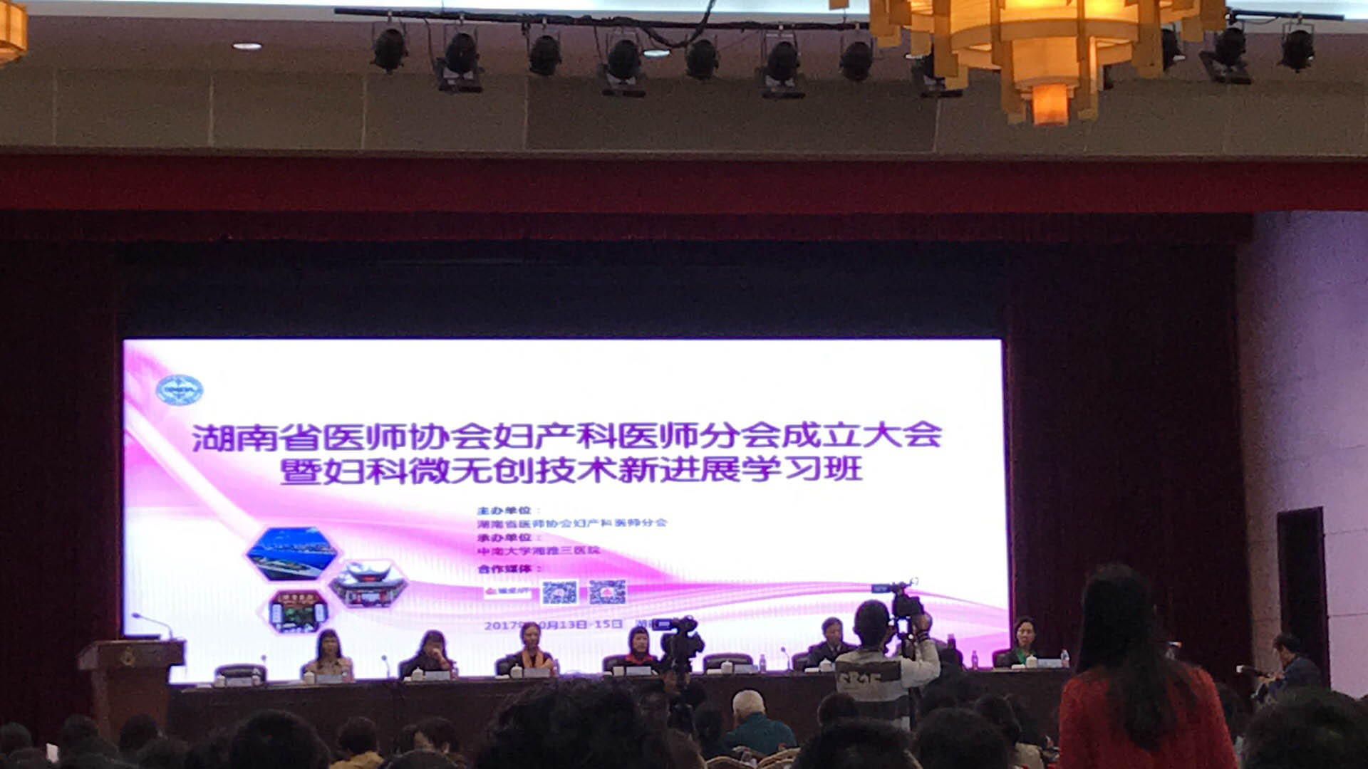10月14日上午八点,开幕式举行,薛敏教授担任主持。中南大学湘雅三医院党委书记罗爱静教授,中国医师协会妇产科分会副会长、中国人民解放军总医院宋磊教授,山东医科大学孔北华教授,湖南省医师协会阎翰副秘书长,中华医学会科学技术普及部唐芹部长到会致辞。开幕式上,妇产科同时获得省内唯一的“达芬奇手术机器人中国妇科临床手术教学示范中心”及“中华医学会全国县级医院人才培养计划妇科腹腔镜培训基地”授牌。
