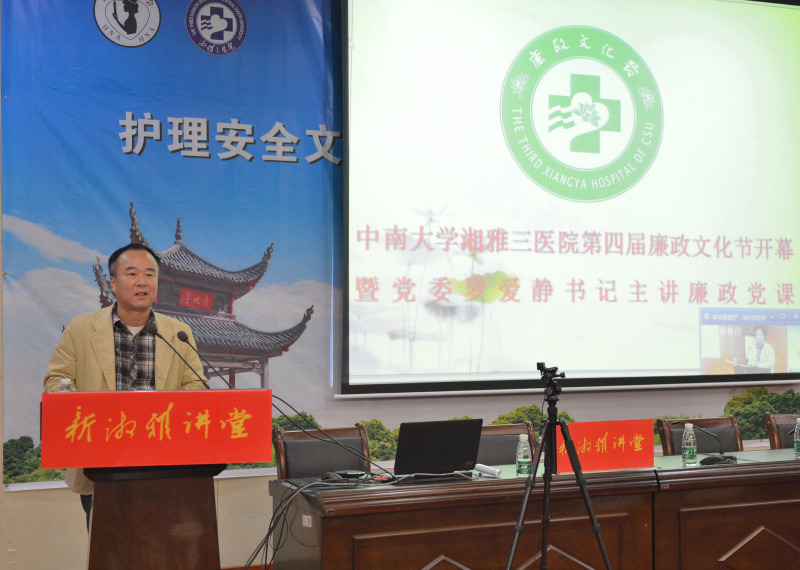 11月2日,在全党全国庆祝党的十九大胜利召开,深入学习、宣传、贯彻落实党的十九大会议精神之际,中南大学湘雅三医院在外科楼学术报告厅举行开幕式正式启动第四届廉政文化节。医院党委罗爱静书记主讲了《迈向中国特色社会主义新时代—学习党的十九大会议精神》的主题党课。开幕式由党委副书记、工会主席邓云龙主持,医院纪委副书记、纪委(监察)办主任李寿森宣读第四届廉政文化节活动方案。