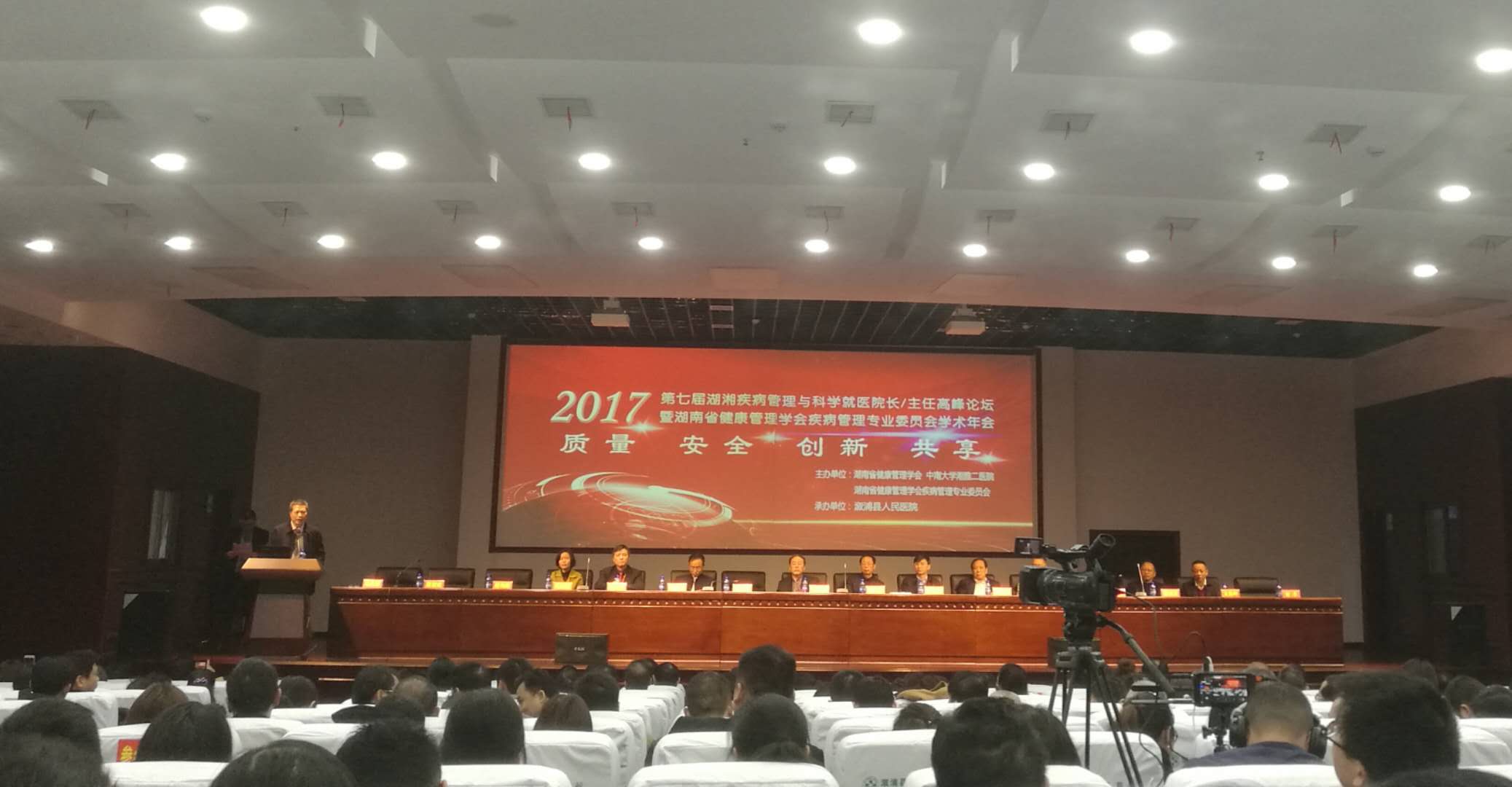 据悉,本次会议由湖南省健康管理学会疾病管理专业委员会举办,旨在深入贯彻党的十九大精神,积极推进健康中国战略,加强基层医疗卫生服务体系的建设,预防控制重大疾病。会议紧密围绕质量、安全、创新、共享这一主题,深入探讨医疗服务及非医疗服务质量与安全服务体系建设、医学发展趋势与挑战、医疗大数据下预警体系的建设、主动医疗服务模式的设计与应用、疾病管理新进展等专题。国家卫计委离退局朱尧耿副局长、湖南省卫计委龙开超副主任、湖南省医学会刘家望会长、湖南省健康管理学会李桂源会长和湖南省各大医院的院长、主任和相关管理人员数百名代表参加了本次会议研讨。
