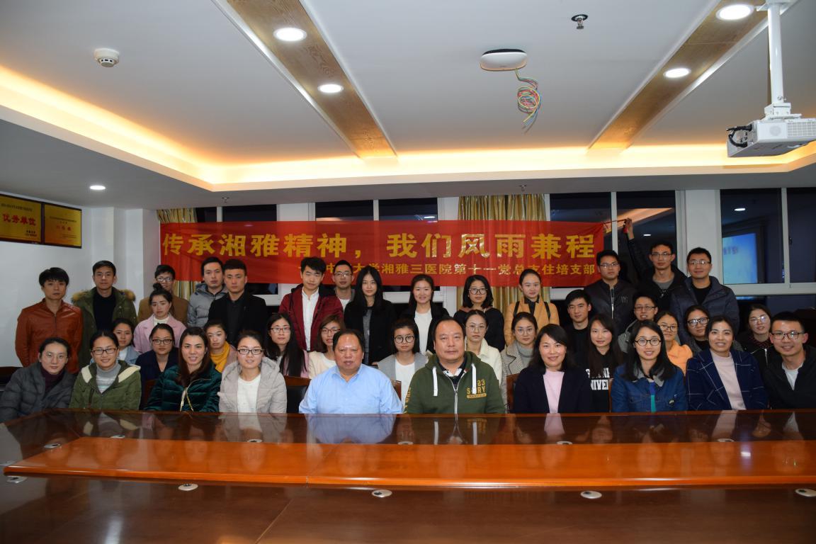 当晚,在医院科教楼8楼会议室,黄珊琦副研究员带来精彩的《百年湘雅史、传湘雅精神》讲座,支部书记杨梅瑰主讲了《学习党的十九大精神,做合格住培党员》党课。活动由第十一党总支书记罗海波主持,住培全体党员和住培入党积极分子共62人积极参与。