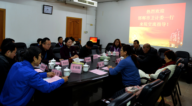 12月14日,河北邯郸市卫计委副调研员王秀库、工会主席龚娟及邯郸市多家附属医院副院长、副书记及工会主席团队一行17人来到我院工会参观交流。交流座谈会由院党委副书记兼工会主席邓云龙主持,党委书记罗爱静及部分工会干部出席本次座谈会。