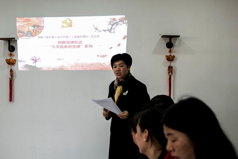 临近新春,中南大学湘雅三医院健康管理科三楼营养宣教室里第七党总支健康管理科党支部也正在以全新的模式进行一场别开生面的党课学习。由每一位党员在自己的“党员政治生日”月来开展“我来讲党课”活动,每一位党员都是老师,每一次党课都是理论联系实际的提炼。通过这样的“师生”角色互换,达到教学相长的目的。