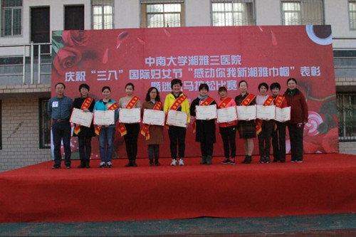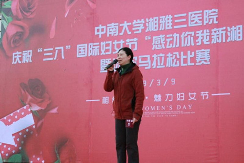 为庆祝2018年“三八”国际妇女节,3月9日下午,在湘雅医学院室外运动场,院工会举办了第三届“感动你我新湘雅巾帼”表彰及迷你马拉松比赛活动。党委书记罗爱静、党委副书记兼工会主席邓云龙出席,活动由工会常务副主席徐绍容主持,700余名教职工及部分家属参加了此次活动。