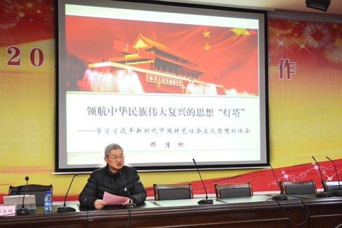 邓清柯说,党的十九大从时代和全局的高度,提出习近平新时代中国特色社会主义思想,这是具有划时代里程碑意义的理论创新成果。党的十九大把习近平新时代中国特色社会主义思想写进党章,确立为党的行动指南,实现了我们党指导思想上的又一次与时俱进,为实现中华民族伟大复兴提供了强大的思想武器。习近平新时代中国特色社会主义思想是党的十九大的灵魂和最大亮点,是党的十九大的一个历史性的决策和最重要的贡献。面向未来,我们要走好新时代的长征路,必须始终坚持这一思想的指导地位不动摇,努力用这一思想武装全党,自觉把这一思想贯穿于社会主义现代化建设和党的建设全过程和各个方面。