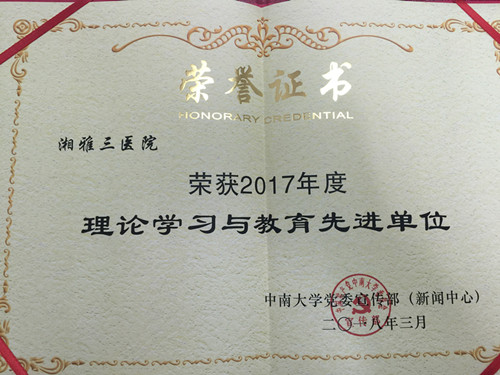 3月29日下午,中南大学召开2018年宣传工作会议,校领导易红、陶立坚、陈治亚出席会议。湘雅三医院荣获中南大学理论学习与教育先进单位,院党委书记罗爱静以“发挥学习‘头雁’效应,推进理论武装入脑入心”为题作全校经验交流发言,院党委副书记、纪委书记吴希林代表医院上台领奖。