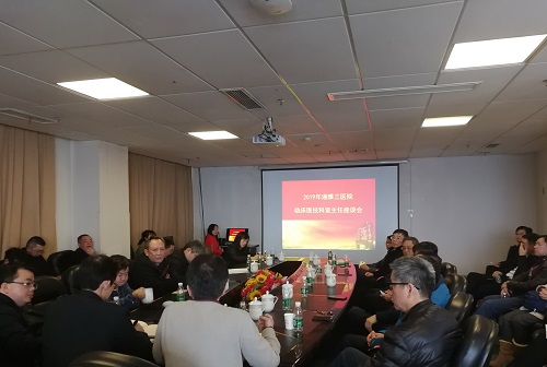 2月1日下午,湘雅三医院2019年第一次临床医技科室主任座谈会在外科楼十九楼会议室召开。医院党委书记何庆南,党委委员、副院长欧阳文,全体临床医技科室主任及相关职能部门主任等50余人参加会议,会议由医务部主任张翼主持。