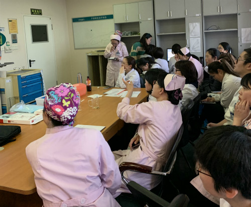 活动伊始,米春梅主任医师对羊水栓塞的并发症进行讲解。羊水栓塞是指产妇分娩过程中,羊水突然进入母体血液循环,进而引起并发症,可表现为呼吸困难、凝血功能障碍后继发性全身出血等。她强调,实操过程中对于并发症的判断预防、药物的使用、疗效的观察与评估需要医护人员过硬的专业知识加以支撑。