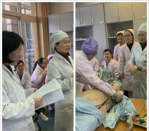 随后,产房护士长彭红婴、秦春香模拟了操作医疗环境,医护人员分工合作,展开演练。