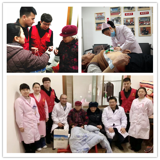 活动最后,一行人还专程拜访了村里的一对百岁老人——余正纯、朱淑缘夫妇,为老人献上了一份爱心礼物,并进行健康检查和指导。尽管两位老人年事已高,行动不便,但身体尚佳,精神状态很好。志愿者一行的到来令这对长寿老人很激动,十分感谢湘雅三医院送来的关怀及给予的帮助。