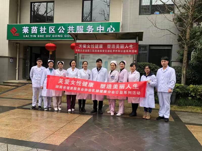 近年来,甲状腺、乳腺疾病的发病率逐渐呈高发态势,而与其相关的乳腺癌发病率已居女性恶性肿瘤之首。为了进一步提高女性健康意识,减少乳腺疾病危害,提高广大病友对甲状腺、乳腺疾病的认知度,科学预防和治疗相关疾病,3月8日国际妇女节之日,湘雅三医院乳甲外科应邀前往岳麓区莱茵社区谷开展以“关爱女性健康 塑造美丽人生”为主题的乳腺甲状腺疾病筛查义诊活动。