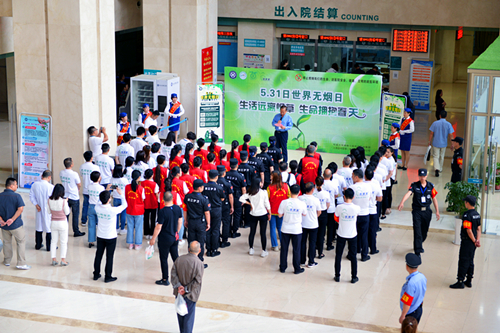 5月31日是世界卫生组织发起的世界无烟日,中南大学湘雅三医院开展了以“生活远离烟草 生命拥抱春天”为主题的大型禁烟宣传活动。此次活动由后勤保障部、安全保卫部、医院办公室、门诊部、医务部、护理部、党委宣传部、工会、团委、呼吸内科等多个部门联合举办,同时青年教职工、青年学生志愿者、物业及各外包相关公司、街道健康促进、爱卫、禁烟相关部门等院外单位及人员共同参与了活动。