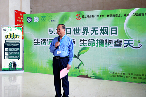 在活动的启动仪式上,医院党委委员、副院长黄飞舟就吸烟的危害和对环境的影响进行了发言及禁烟呼吁。