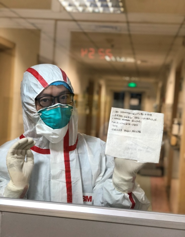 戴上护目镜,穿上防护服,你也许一时不知道我是谁,“我不敢在背后写上自己的名字,因为作为儿女,家里也有老人,我们不能跟他们讲,讲了怕影响他们的心情。”发热门诊工作人员采访时的话至今仍在我耳边回响。伟大的医务工作者,也是平凡的普通人,我们有基本的需求、有喜怒哀乐,也有为人民健康保驾护航的理想和实现自我价值,奉献社会的决心。感谢医院领导高度重视一线医护人员的个人防护安全,后勤保障部门和信息部门也及时为一线人员提供生活物资保障和技术支持。大家的凝聚力让我们明白,众志成城,我们一定能挺过最艰苦的阶段,取得最终的胜利!
