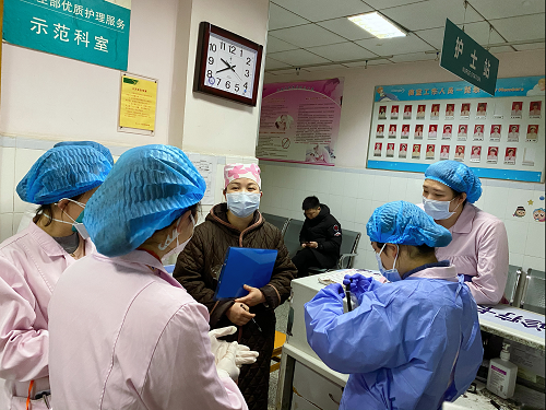 1月17日,儿科门急诊积极响应医院号召,组织全体医护人员学习新型冠状病毒肺炎指南。1月19日,晨会上护士长刘海燕组织儿科门急诊护士学习《中南大学湘雅三医院新型冠状病毒感染肺炎防控流程》及《新型冠状病毒感染肺炎诊疗方(试行)》。同日,院内组织医护人员进行新型冠状病毒肺炎的防护培训。