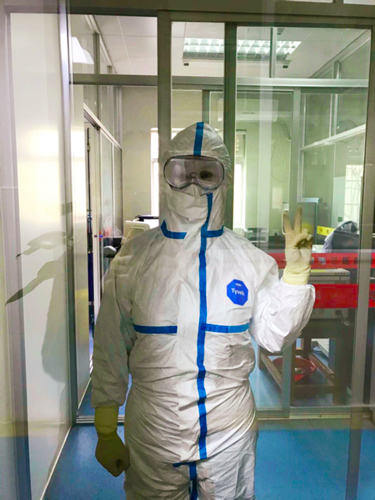 自1月25日大年初一接收到湖南省卫生健康委发放的新型冠状病毒核酸检测试剂盒,临床分子诊断实验室的罗振、李红卫、吴苑三位老师紧急召回,从早8点到晚12点,全力进行各项呼吸道病原核酸检测工作。早发现、早诊断、早隔离、早治疗是新型冠状病毒性肺炎的关键,而新型冠状病毒核酸检测作为确诊最为快速有效的指标,对早发现早诊断十分重要。尽早发报告,是临床抓住黄金时间尽早分诊的关键,因此检验科在湖南省率先开展了一天两批次的新型冠状病毒核酸检测,缩短了诊断时间,有效减少了医护感染及交叉感染。为保障临床分子诊断实验室的高效运转,伍勇教授调配一切人力物力,将人员积极性及资源利用发挥到极限。三位老师从门急诊实验室收集标本,用标本盒转运至临床分子诊断实验室,穿戴好防护服、手套、口罩、护目镜、防护面罩后,便通过实验室缓冲区进入试剂准备区、标本制备区、扩增区及分析区开始一天的工作。五六个小时憋尿、忍渴、扛饿的各种忍功是穿上防护装备后的常态,同事们之间互称忍者打打趣方能缓解一下紧张和疲劳的状态。在长时间的检测工作过后,三位老师又继续开始了向各级诊室和各级领导报告的漫长工作。紧急研发的新型冠状病毒核酸检测试剂盒在检测开展的前期需要一个适应过程,三位老师凭借丰富的实验室经验及专业知识、技术储备,商讨和解决了期间遇到的各种问题。截至28日18点,据CDC回报的确诊结果,检验科送检的疑似病例标本,阳性符合率为100%。