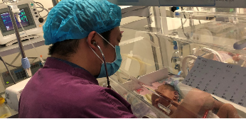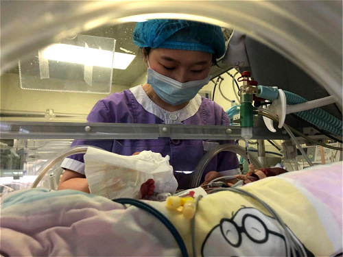 我于2020年1月1日来到这个世界,出生体重1kg,胎龄25+6W,一看就知道我是个顽皮的“小老鼠”,因为好奇新世界就迫不及待的提前三个多月从妈妈肚子里蹦了出来。我一出来可把医生护士阿姨、叔叔们忙坏了,因为各个器官发育不成熟的我需要高级别的待遇,我一出生医生就给我气管插管下肺部注入了肺泡表面活性物质及呼吸机的支持,给我配备了“精密呼叫器”(监护仪),我有任何的不适他们都在第一时间给我安抚!我有点懒,也有点小调皮,经常给叔叔阿姨们制造一点小麻烦;我的小肚肚还不能完全适应妈妈的乳汁,叔叔阿姨要给我建立生命的通道输入静脉营养;我还需要住在这个超级舒适的大暖箱里。经过他们近1月来的精心照顾,现在我可以拿掉这个讨厌的插管呼吸机,改经鼻无创呼吸机,有点小开心哦。我现在每天戴着无创呼吸机,呼吸可顺畅了,奶量大增了,体重也长到了1.35kg。我记得这位薄伯伯,不管我何时召唤他,他都会以最快的速度来到我身边,薄伯伯胆大心细、负责任、也非常的接地气,他不管多忙多累,每天都会来看我们这群“小老鼠”好多好多次。