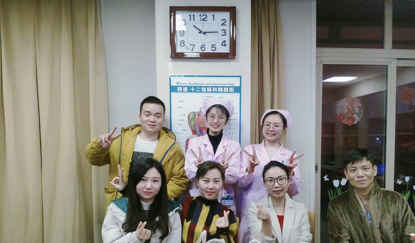 春节期间,肝胆胰II外科主任余枭带领团队多次查房,慰问因病情需要无法回家与家人团聚的患者,并每日实时了解病房动态、发热咳嗽患者的检验结果和科室同事的身体状况等。同时,组织学习抗击疫情应急预案,并随时做好准备奔赴前线。2月1日,团队行一台急诊胆囊切除手术,科内医生忍住身体不适,将患者置于首位顺利完成手术,输液值班医生尽职尽责为患者保驾护航。余枭强调:在这疫情作乱的关键时刻,我们更应保护自己、强大自己,保证医疗安全,共同战胜疫情!