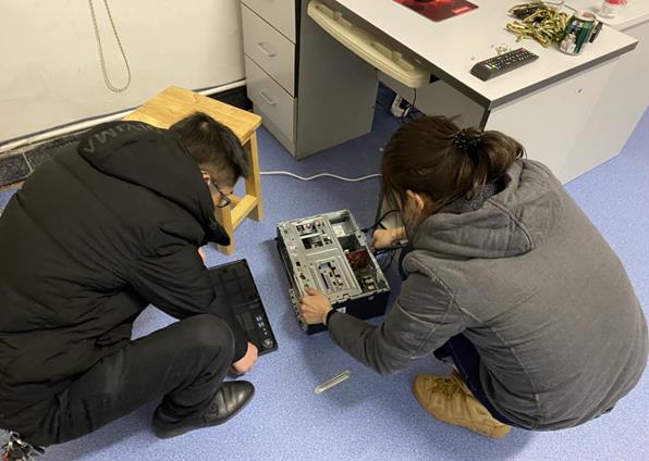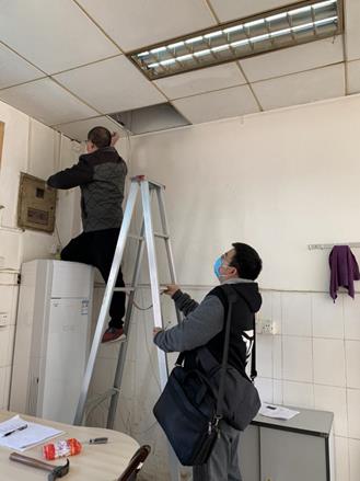 发热患者数量的急剧上升,医院临时决定改造校友楼为新发热门诊,同时搬迁急诊超声。但是大年初六,不出门的号召使得完全找不到网络布线的工人,我们科技术在身不畏惧,主任亲自上阵自己动手“飞檐走壁”铺设新发热门诊网络和急诊超声搬迁地址网络,两天都忙到晚上12点,累了就在地上坐一会,盒饭也在路边吃,充分体现了“接地气”的信息人。