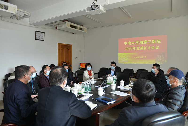 2月3日,习近平总书记在中共中央政治局常务委员会上发表重要讲话,要求把疫情防控工作作为当前最重要的工作来抓,切实做好各项防控工作,在加强疫情防控的同时,努力保持生产生活平稳有序。中南大学湘雅三医院党委深刻学习领会习近平总书记讲话精神实质,于2月5日上午召开2020年党委扩大会议,总结2019年工作要点、研判2020年工作形势,为新一年的工作谋篇布局。会议由党委书记何庆南主持,全体院领导出席会议。党办、院办、党委宣传部、人力资源部负责人列席会议,其他党群行政部门负责人通过视频会议的形式列席。
