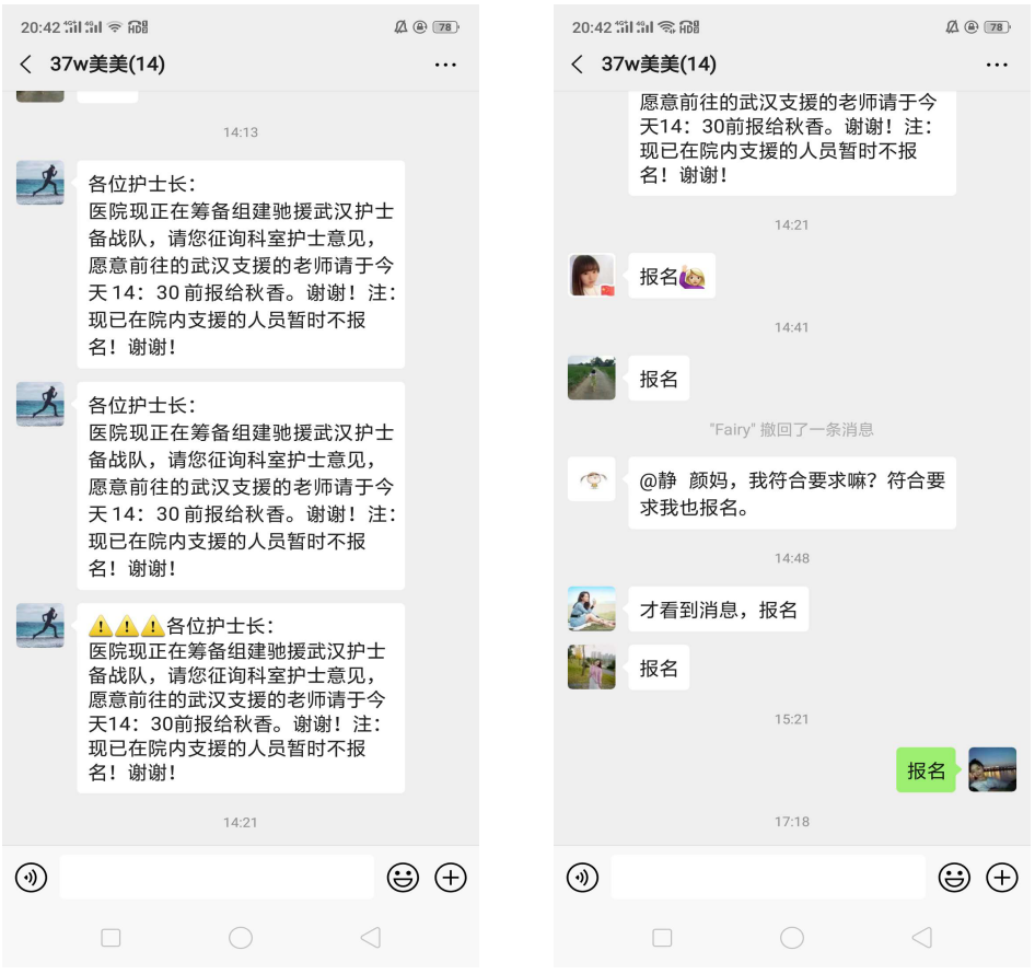 2月7号,医院接到国家卫健委的任务,迅速向医院各个科室征集志愿者,不到2小时就报满,医院从中挑选了一些临床经验丰富的骨干专家,组成了一支经验丰富的国家医疗队伍赶往湖北支援新型冠状病毒感染的肺炎疫情防控工作。老年病科刘倩老师也报名参加了此次驰援武汉的医疗队,我们为她感到骄傲,同时也叮嘱她,一定要平安归来,我们都在家等着她。