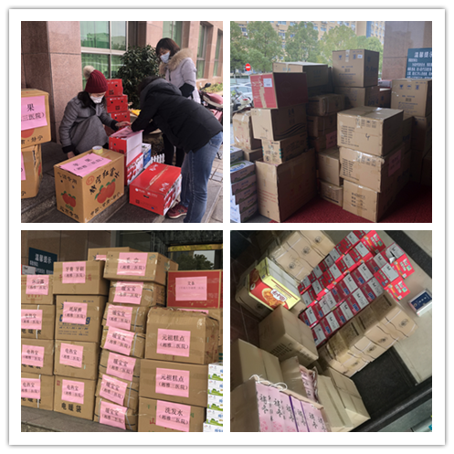 工会为所有医疗队员准备的日用物资、食品均按人均一份以上整齐配备,共计107箱。包括整齐统一的队服,小到毛巾、洗发水、牙膏、牙刷、沐浴露、洗脸盆、卫生纸,塑料桶等各种日用品;还有特殊时期急需的暖宝宝、电热宝、纸尿裤、速干衣,女职工特别需要的卫生巾等物品;食品除牛奶、巧克力、方便面外,为职工提供生日蛋糕配送的元祖食品有限公司主动紧急配送了140份价值近两万元的元祖糕点免费送给医疗队员们。另外,根据医院领导的特别要求,还特意采购了苹果,寓意为希望医疗队员们不负嘱托、勇担使命后平平安安、健健康康地归来。