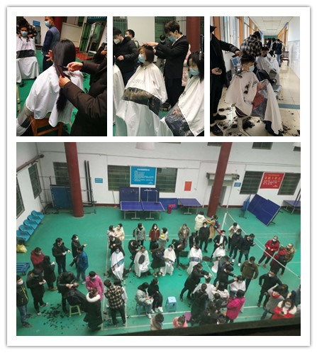 通常情况下,医务人员为更好地做好自身防护,在出征前男女队员需要进行理发。在长沙城全城大型营业场所暂停营业的状态下,工会深夜两点多联系到水灵珑美容美发店的工作团队同意为出征队员们理发,早上8:30便安排10名专业理发师为队员们提供服务,解决了医疗队员们,特别是女队员们的一些特别需求。出于对医疗队员们的崇敬,理发团队的成员们坚决不收费,志愿服务。