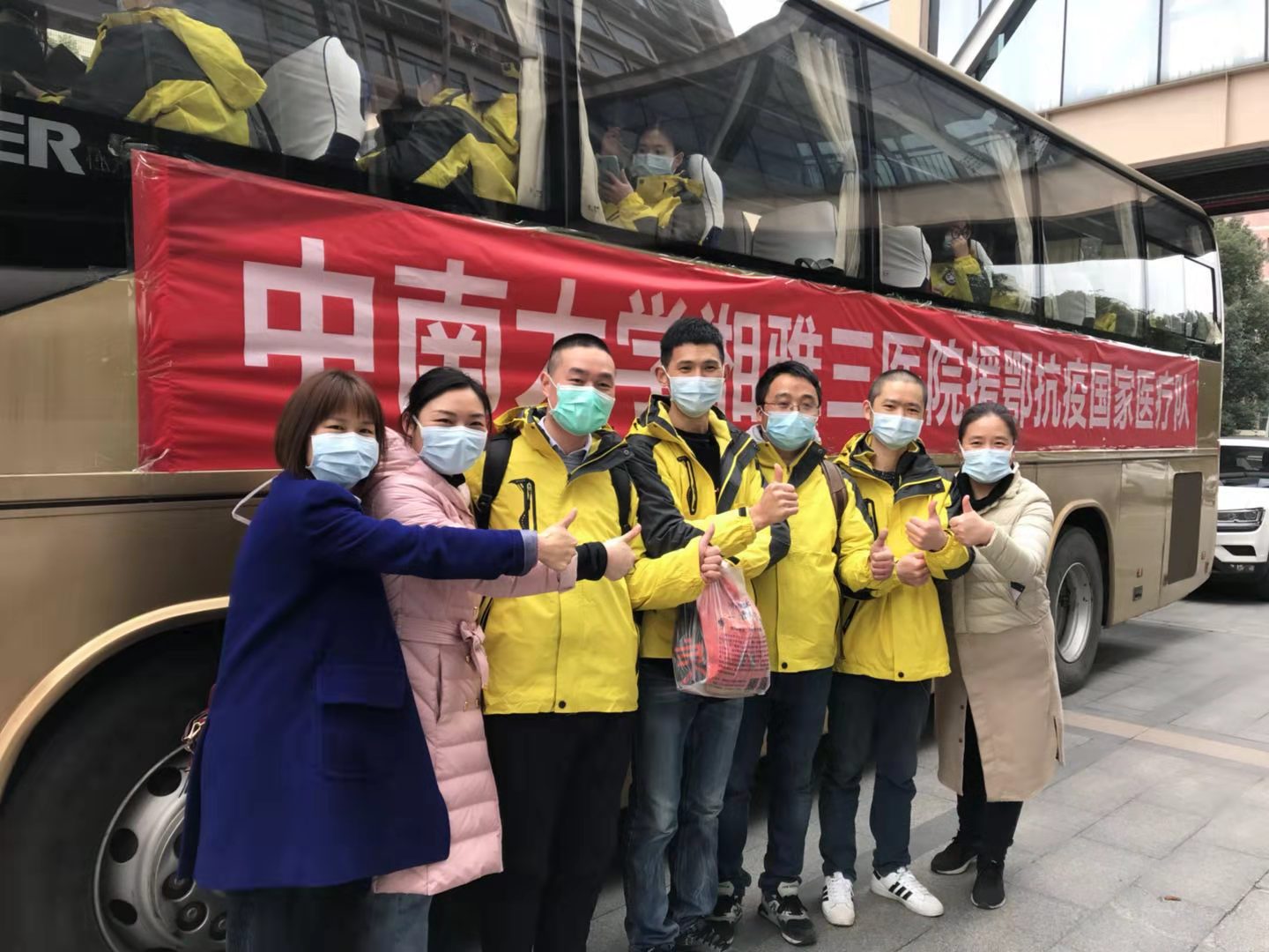 匆匆吃过早饭,赶到医院门诊五楼接受培训,吃过食堂准备的元宵节大餐(盒饭还配了汤圆),来到外科楼集合,好多老师来送行。老师们叮咛嘱咐,因为担心而瞬间落泪,好伙伴执意帮我准备的速干衣,零食……各种感动。一大早她们就来到科里,把同事们送的大大小小物资帮我们分装好,中药西药,维生素创可贴,电热毯毛袜。我自己都没想到的东西老师们都帮我们准备了。书记院长讲话,宣誓,拍照,上大巴。场面喧嚣而有序,终于在有人欢笑有人泪眼婆娑中,在依依不舍的惜别中,大巴车缓缓离开。