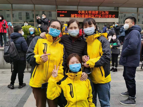 2020年2月8日接到党组织的号召,科室三小只远赴武汉支援当地医疗。我们胃肠外科派出的三位护士都是90后的年轻护士,他们主动请缨,毫不畏惧,是我们学习的榜样。
