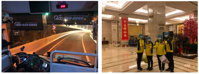 凌晨三点半,伴随着急促的闹铃声,我起床、洗漱、拿起提前准备好的工作服、护士鞋,戴上一次性帽子和口罩,到驻地一楼大厅与其他三位队员集合。上班的紧迫感使大家感受不到凛冽的天气,仅有些许紧张和不安。隔着车窗玻璃,我注视着夜幕下的江城武汉,这是我第一次来武汉,夜色下的武汉更加静谧,路边为数不多亮起来的门头招牌好似武汉人民对抗新冠疫情的鲜亮旗帜,彰显着顽强不屈的精神意志。