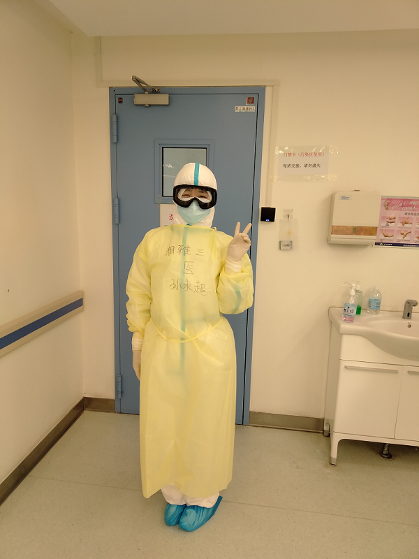 工作氛围很融洽,大家都争着进隔离区,把责任担在肩上,把安全留给同事。在隔离区里的同事负责查看病人,做各项操作,通过对讲机和微信图片把患者病情及各种检查检验参数发给清洁区的同事;清洁区同事接下来制定治疗方案,修改医嘱和完善病志。病区有48名患者,一个班下来,不吃不喝不上厕所,常常累到有些虚脱,脱下隔离衣的时候,经常是内衣裤子湿漉漉的贴在身上,一阵凉风吹过,酸爽……