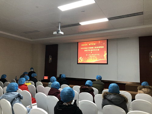 “元宵节里,你们驰援武汉,十多天过去了,大家在战疫中深刻体会到了什么是医护人员,什么是党员,党员的先锋模范作用……”会议室里响起了中南大学湘雅三医院党委书记何庆南同志的声音。何庆南书记在线上参与本次党员会议,并对医疗队的工作给予了高度肯定,同时也嘱咐大家:人到半山路更险,工作久了防护意识也不能松懈,我们还需要更加警惕,充分发挥党支部的战斗堡垒作用和党员的先锋模范作用,打赢这场疫情防控阻击战,平安归来!