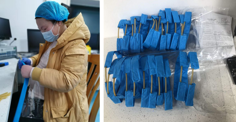 战斗在持续,为了缓解防护物资日渐紧缺的状况,放射科“能工巧匠”们发动智慧,自己动手。还有一个多月就要生产的陈维,利用压脉带、透明文件夹,挺着大肚子为大家缝制“放射科版防护面罩”;防护服、隔离衣紧缺,李心园主管护师和李小玲主管护师为大家购置雨靴和雨衣做战甲。而这些,其实只是放射科一线技术、护理人员的一个缩影。抗疫期间,所有CT、MR、普放照片岗位的一线战士们,在防护物资紧缺的情况下,“节衣缩食”,尽最大的可能不浪费一套防护服、一套隔离衣、一副手套、一个口罩。
