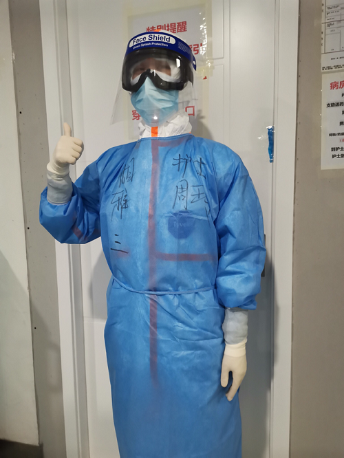 在我们病房内收治的重症患者中老年人居多。给我印象最深刻的是一位72岁的吴爷爷,一次,他不小心解了大便蹭到了床上,倔强的他不让我们去给他护理,因为他听说新闻里说了大便也会传染,他说:“你们这么年纪轻轻的来帮助我们,已经很了不起了。我是一名军人,我现在给国家做不了贡献,但是我也不能害了你们。你们也是家里的孩子,父母手中的掌上明珠,你们要养足精力,去救治比我对国家,对社会更有用的人。”我忽然明白了什么,这种从骨子里渗透出来的对党的忠诚、对军的服从、对国家的热爱……是无论何时何地何种情况都无法改变,这种精神值得我敬佩。但我也有我的责任和义务,我知道我必须说服这“倔强的”军人老同志,出于对护理的需要,我们必须给吴爷爷换上干净的床单。最后,吴爷爷被我们成功“拿下”,当我们走出病房时,我瞥见吴爷爷对我们的背影竖起了大拇指。那一时间,我的眼眶也不仅有些湿润,即使穿着厚重的防护服,我也想赶快”溜走“,不让吴爷爷发现我对他流出的倾佩的泪水。我抬抬头,继续投入到我的护理工作中去。