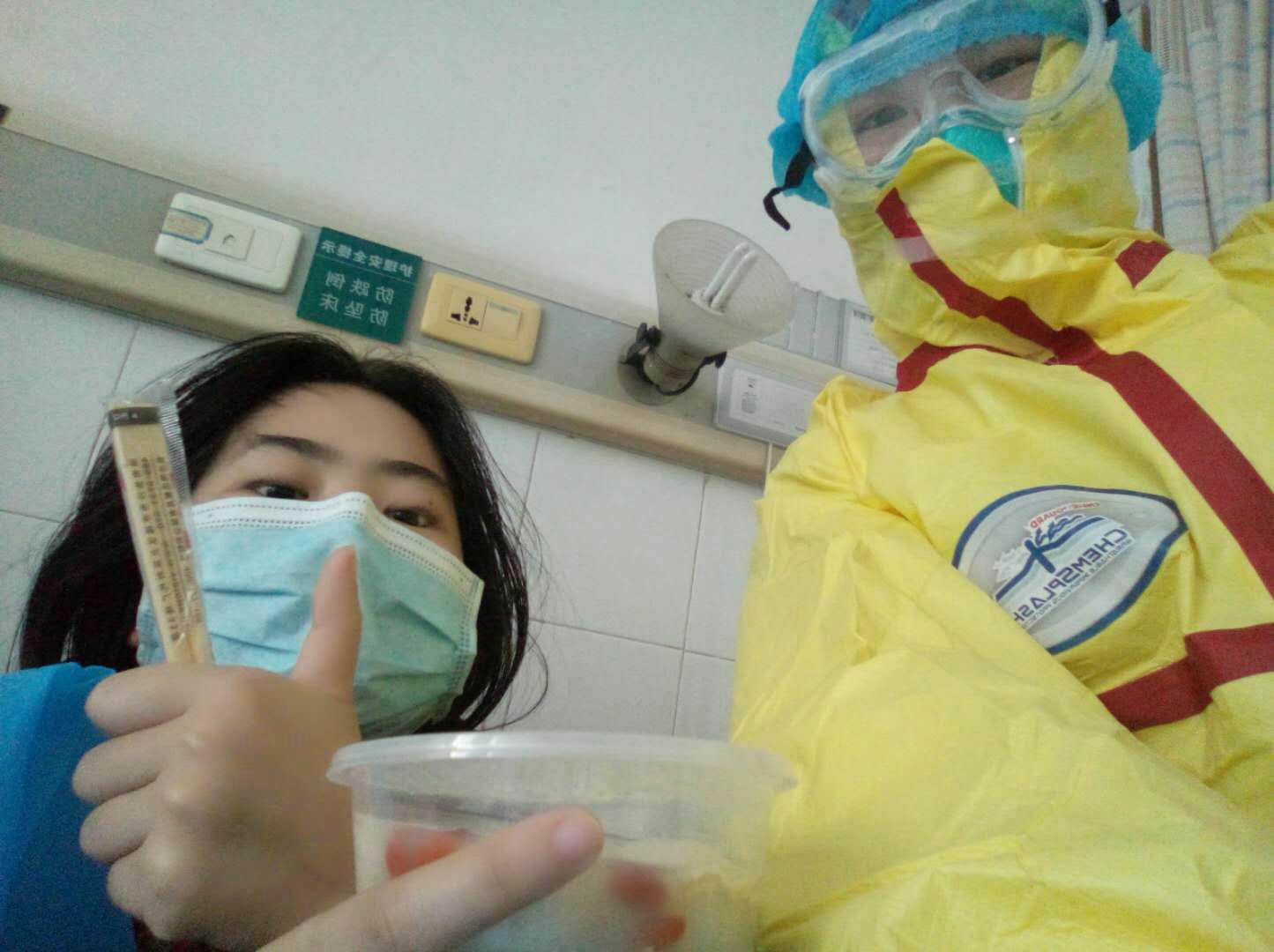 1月22日开始,隔离病房就开始收治了新冠肺炎高度疑似病人和确诊病例。裹着密不透风的防护服,戴着让人窒息的N95口罩,顶着瞬间就让人眼睛模糊不清的护目镜,我们感受到了前所未有的压力和挑战。病人的焦急、恐惧、无助、痛苦也让我们措手不及。由于要避免交叉感染,很多工作岗位的缩减,我们便成了身兼数职的那个人,送开水、发饭、打针、测生命体征、端屎倒尿.......所有我们该干的不该干的,任何病人需要医生处理以外的事情,我们全部包干到底。在王倩护士长的带领下,大家各负其责,各尽其能,积极主动地去做好每件事情。几天下来,大家的脸上均烙上了“最美的花”,有些甚至还起了溃疡,双手粗糙干裂,身体极度透支,但是勇敢的我们毫不在乎,甚至还互相打气调侃,苦中作乐,调节好自己的情绪继续战斗。在医院一次又一次的支援湖北申请中,感染科人又纷纷报名参加,我们时刻准备着,哪里需要,我们就到那里去。
