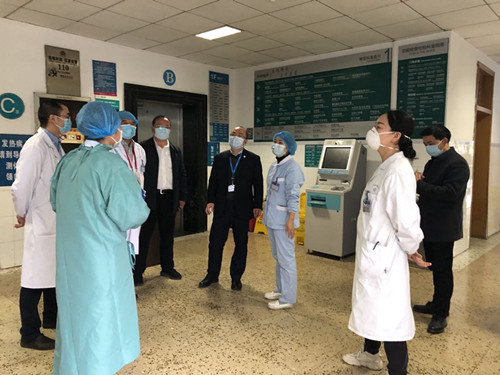 张劲强一行人首先来到急诊科,对急诊科的全体人员表示感谢与慰问。因为今年新冠肺炎疫情的影响,急诊科的风险性与长时间承担的工作量非比寻常。在主任张天一、护士长郭美英的带领下,全科人员坚守前沿阵地一线,整个春节期间特别是在2月8日,急诊数人参加支援湖北后,涌现了很多感人的急诊故事。张天一和郭美英代表全科人员感谢领导的关心,表示将不忘初心、坚守岗位,努力完成好各项工作任务。
