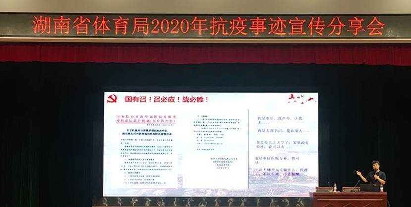 分享会结束时,主持人罗器宇号召大家学习先进典型,汲取榜样力量,用湘雅抗疫事迹激励广大运动员发扬吃苦耐劳,不畏困难,不忘初心,勇攀高峰的斗志,力争在明年的东京奥运会和陕西全运会上勇夺金牌,为国争光。