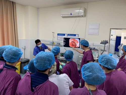 专题讲座环节,刘俊教授首先就《内痔的内镜微创治疗及思考》进行了精彩讲座,从内痔的定义变迁、内镜下内痔治疗的技术发展,以及临床实际应用中的经验等重要临床问题进行了讲解,提纲挈领的为临床医师提供内镜治疗思路和方向。梁斌教授就《内痔套扎治疗的经验分享》,以自己实际临床病例讲解,详细阐述了内痔套扎技术的规范化应用及临床研究的进展,分享了内镜操作的要点和难点。后续讨论过程中,姚礼庆教授临场分享了他在临床中遇到的罕见病例,并分享了宝贵的临床操作经验。病例讨论环节,湘雅三医院消化内科杨振誉医师分享了一例消化道出血病例同与会专家进行了深入广泛的交流及探讨,提升了内痔的内镜诊治能力。手术现场演示环节,陈进忠教授、梁斌教授、肖梅教授、肖定华教授分别演示了内痔的内镜下治疗操作。每场操作结束后均有热烈讨论,专家们则为与会者们答疑解惑、分享经验。手术现场演示完毕后,会议还安排了手把手培训,专家们带领学员们进行实际操作演练。会议交流热烈,充分讨论,会后学员们一致表示,此次学习理论与实战结核、规范与进展并举,收获颇丰。