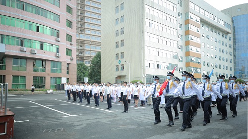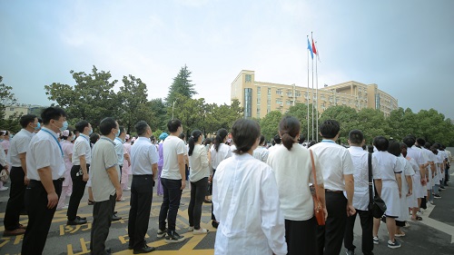 7月1日7:30,中南大学湘雅三医院在综合楼前坪举行庆祝中国共产党成立99周年升旗仪式。全体院领导,党总支书记、党支部书记,党总支委员、党支部委员,教研室、临床医技科室正、副主任、护士长,行政后勤全体工作人员,教职工、离退休和学生党员代表参加了升旗仪式。