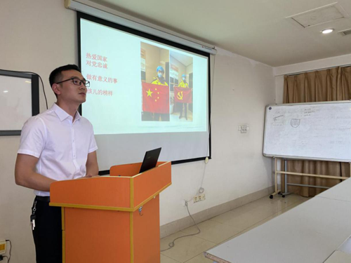 医院援湖北国家医疗队三位队员进行了抗疫事迹分享。烧伤科韩朝飞同志分享的主题是“热爱国家,对党忠诚”。工作上,他是一位尽心尽责的医生,从医是为了做更多有意义的事情,治病救人,勇于担当,这次湖北抗疫也是一名白衣战士的职业情怀的本性出征。生活里他是一位慈爱的父亲,严格要求自己,不断的进步是为了成为孩子更好的榜样。