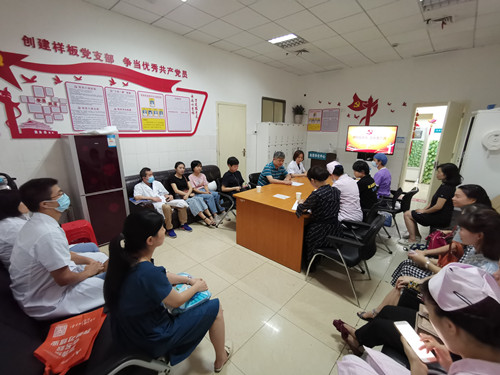 最后,支部书记张浩同志号召大家:“在后疫情时代,我们全体党员同志仍要共同面对、迎难而上、冲锋在前、坚守一线,以党员勇于担当的精神和扎实的工作作风,认真做好疫情防控的应尽职责,不忘初心、牢记使命,践行医者誓言。”
