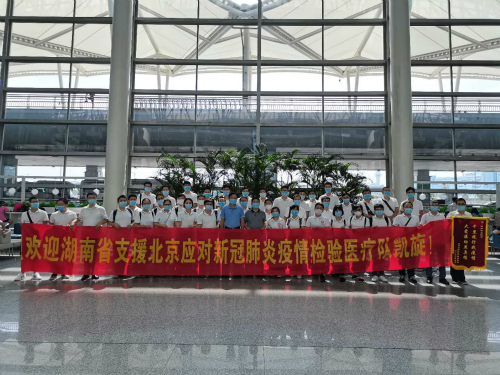 2020年6月,北京新冠疫情防控告急。为了满足北京市新冠病毒核酸检测“应检尽检,愿检尽检”的需要,以及加强北京市公立医院核酸检测力量。应国务院新型冠状病毒肺炎疫情联防联控机制(医疗救治组)要求,湖南省卫生健康委组派2支核酸检测队,共40人支援北京防控新冠疫情。其中,中南大学湘雅三医院抽调2人,检验科罗振、许欢临危受命,代表医院出征。