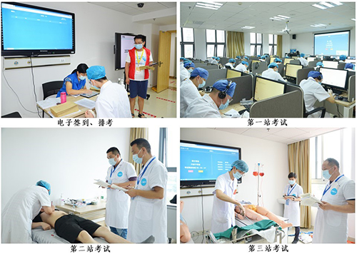 考试期间,省卫健委医学考试中心考试科科长宋爱民、首席考官郭莹教授全程驻点督导。基地切实落实疫情防控措施,严格做好考试相关人员健康信息核查及体温检测工作。在医院感染控制中心、医务科及120的大力支持下,及时安排体温异常考生转诊、进行核酸检测及追踪。对考场环境、用物实行严格的“半天一消杀”制度,责任到人。全体考务人员尽职尽责、分工协作,考试流程井然有序;全体考官恪守职责,纪律严明;圆满完成了2020年医师资格实践技能考试任务。